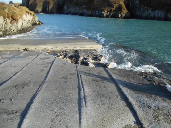 Following the loss of our various cargo boxes during the recent storm we are glad that we have been able to arrange the purchase of the cargo boxes used in the previous service as this will facilitate a return to full normal service to our customers sooner than would otherwise be the case. Both boxes will require some refurbishment before being put into service again and we show the main cargo box with the panels removed. It seems that earlier reports about the new slip being largely undamaged proved over optimistic and damage has indeed occurred due to underscoring by extreme wave action. While it is too early to say and will clearly require expert opinion we hope that the setback may be relatively minor in the overall context of the project and that the damage can be made good. We remind customers as stated in our sailing update that the North or Fishing Pier will be used for some weeks to come in Baltimore instead of the normal ferry pier and that for the months of January and February that there shall be one sailing only on Wednesdays.