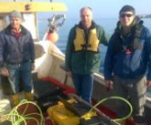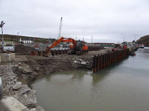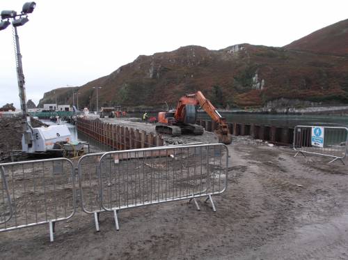 As the photos show there has been tremendous progress made on the pier recently with the piling completed and cut to size and work currently taking place on where the pier tapers out meet the roadway around the Harbour. Progress has been relentless and steady all along and great credit is due to all concerned. We also show a photo taken during a recent hydroscope survey in the area of the proposed distillery. Planning permission has been re-lodged following the delay caused by the unusual  requirement  to put a planning notice on the main Island Pier.