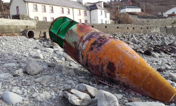 Big Buoy South HarbourWe enclose a photo of the big buoy which drifted ashore in South Harbour recently and was removed by the Irish Lights yesterday. Its not thought to originate in the seas around this country.